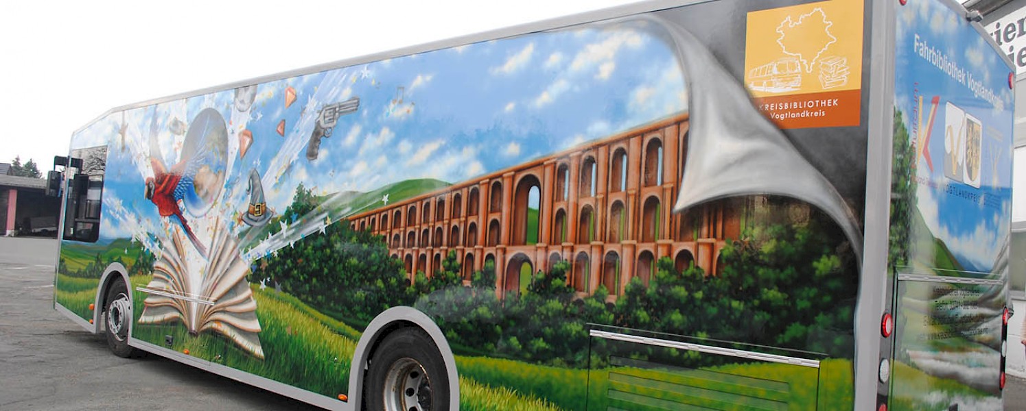 Komplette Busgestaltung für die Fahrbibliothek Vogtland.
