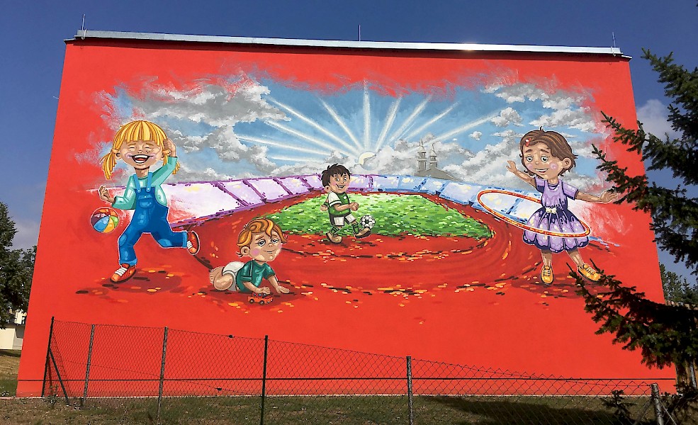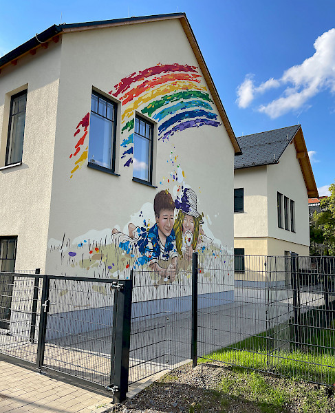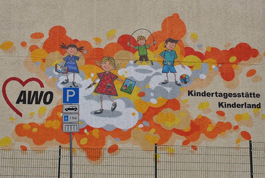Freundlich leuchtende Farbtupfer lassen die Fassaden der Kindertagesstätten erstrahlen.