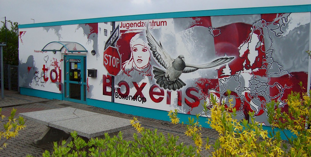 Gestaltung der Außenfassade eines Jugendzentrums.