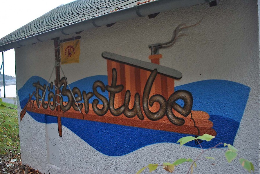 Fassadengestaltung mit Signalwirkung: Treffpunkt für alle Floßbauerinnen und Floßbauer.