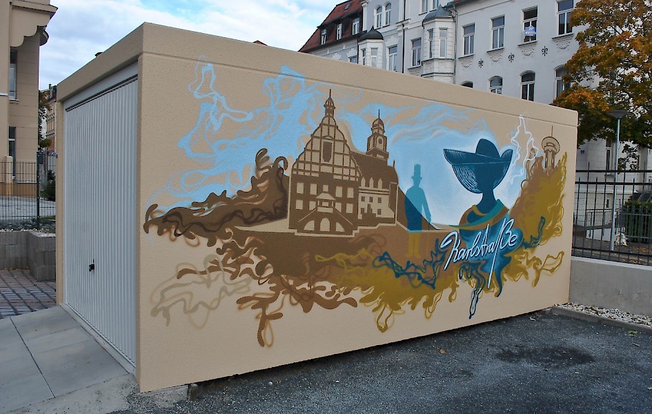 Garagengestaltung mit historischen Plauener Silhouetten.