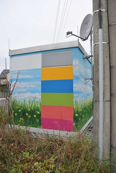 Trafostation bildlich eingebettet in die Natur.