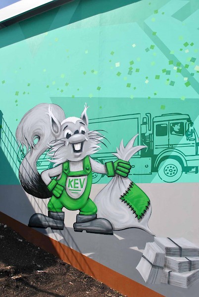 Das Maskottchen zeigt wie's funktioniert: Fassadengestaltung für den Kreisentsorgungsverband Plauen.