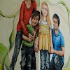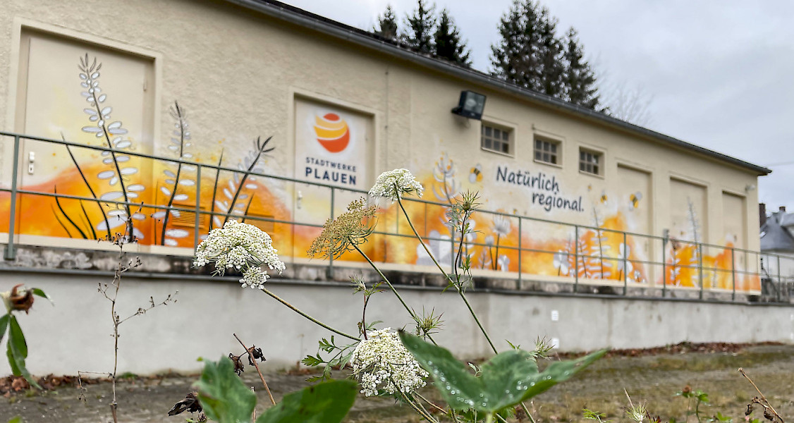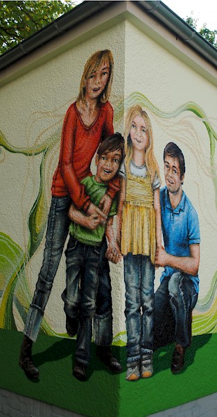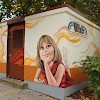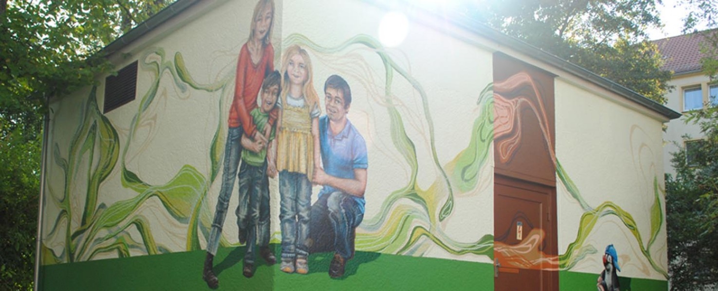 Verschiedene Stromhäuschen mit Familienmotiven.