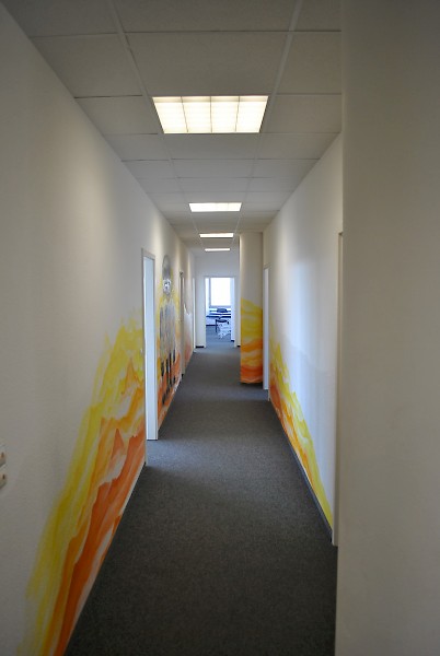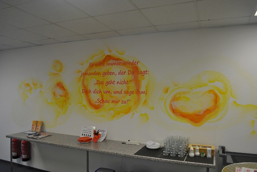 Gestaltung eines Seminarzentrums mit Schriftzug und Motiven, die die Kernbotschaft des Angebotes transportieren.