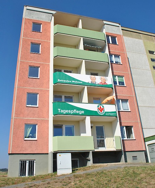 Balkongestaltung für die Volkssolidarität mit Darstellung des Portfolios und einem Werbemotiv als Eyecatcher.